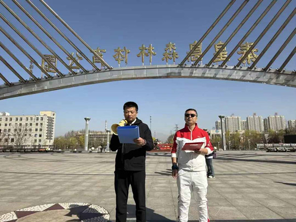 队党委委员宫贯乾代表队班子致辞。他强调此次活动旨在倡导全队干部职工走出室内,亲近自然,公益向善,文明同行,对活动的顺利举办表示祝贺,向精心筹备活动的工会工作人员致以衷心感谢。他要求全体会员将健步走中展现出的昂扬姿态和拼搏精神,转化为立足岗位、干事创业的强大动力,以更加饱满的热情、更加充沛的精力投入到本职本岗工作中,攻坚克难、奋勇争先,为地质四队高质量发展贡献更多智慧和力量。工会主席王双志详细介绍了本次活动的背景、行走路线、趣味规则、安全须知、公益环节要求及奖品设置。